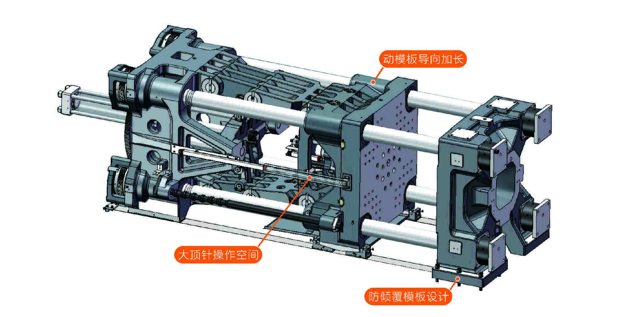 配合薄壁包裝模具要求,進一步加強鎖模機構剛性。
